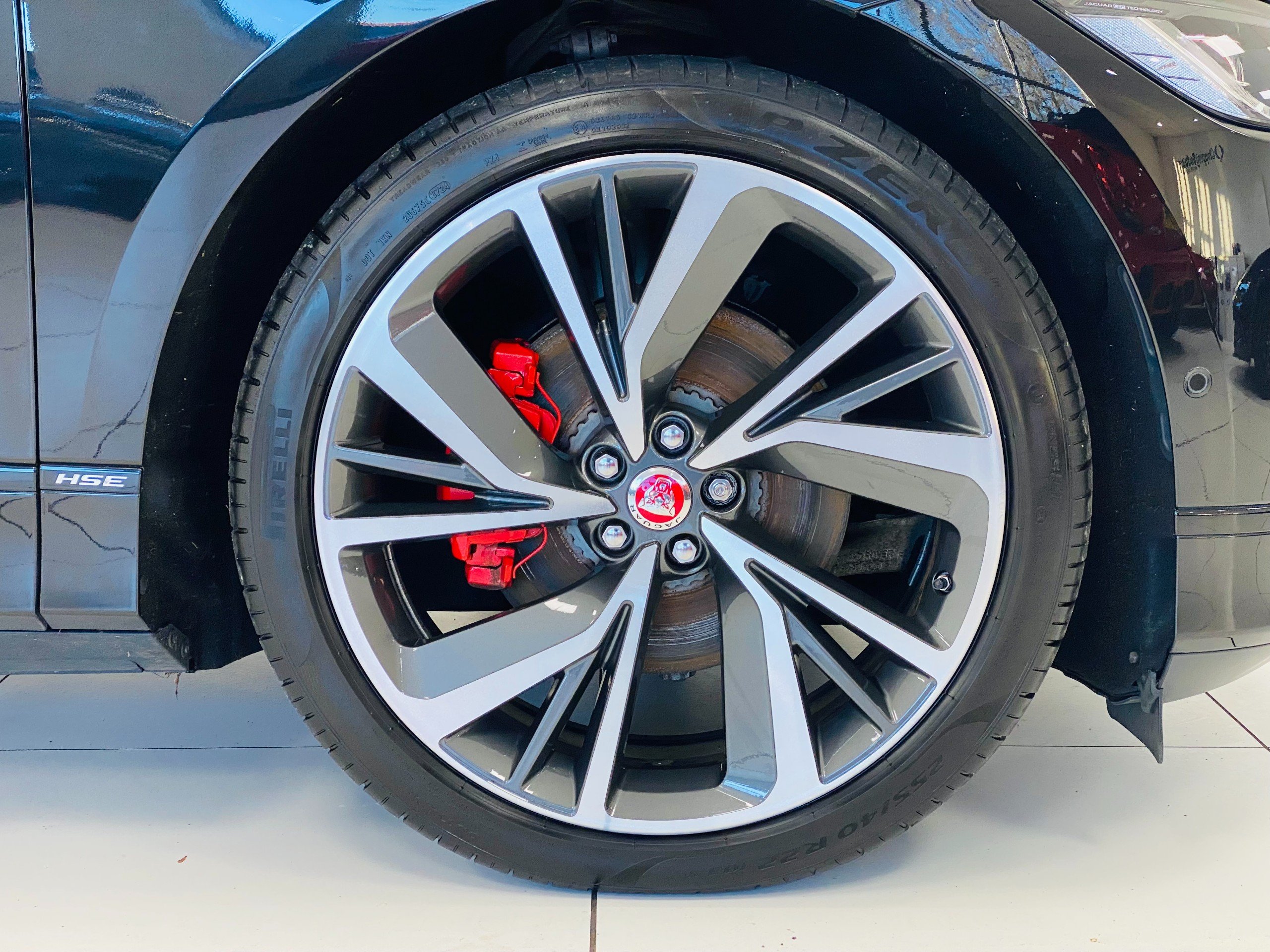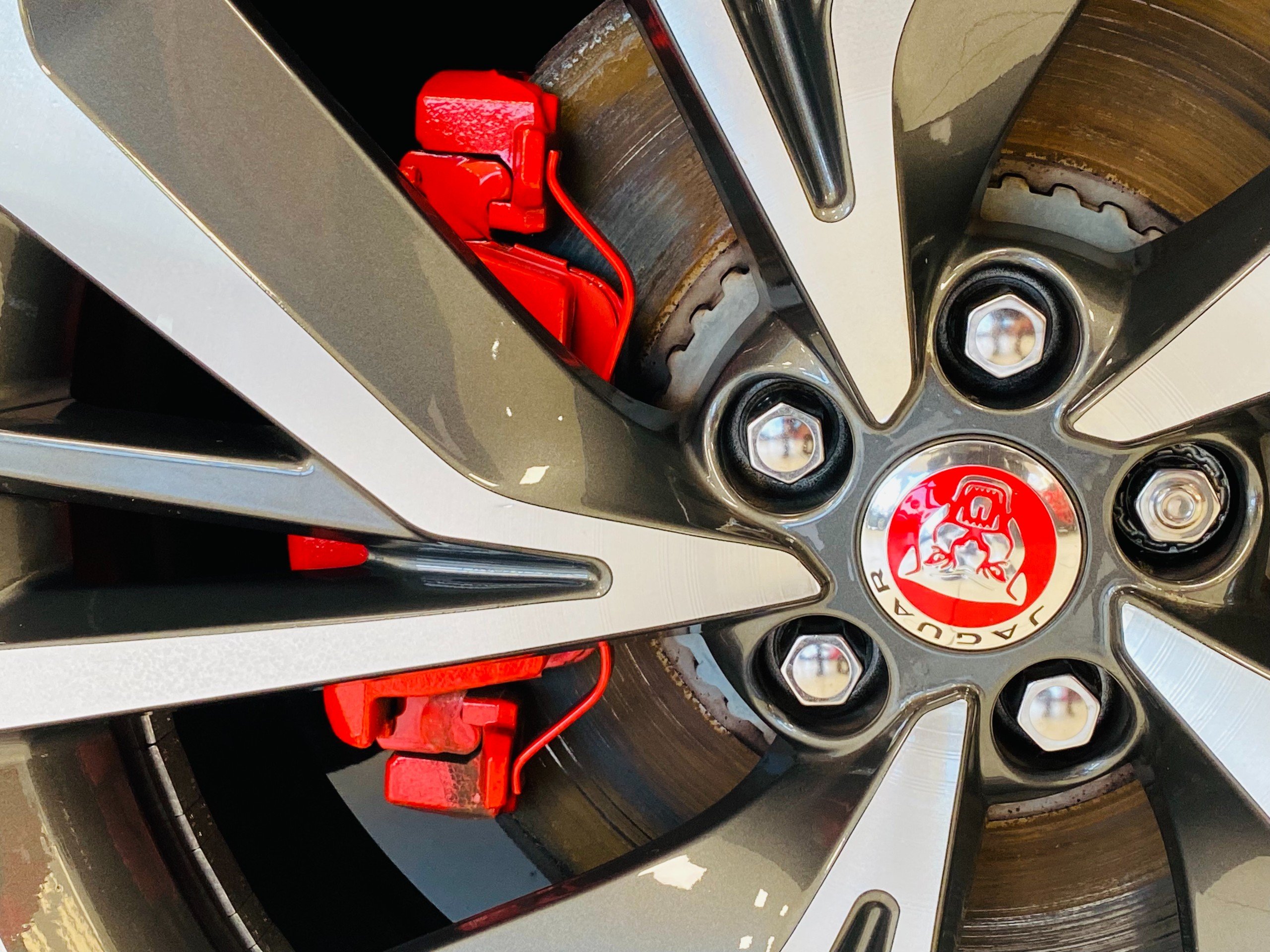 - Red brake calipers