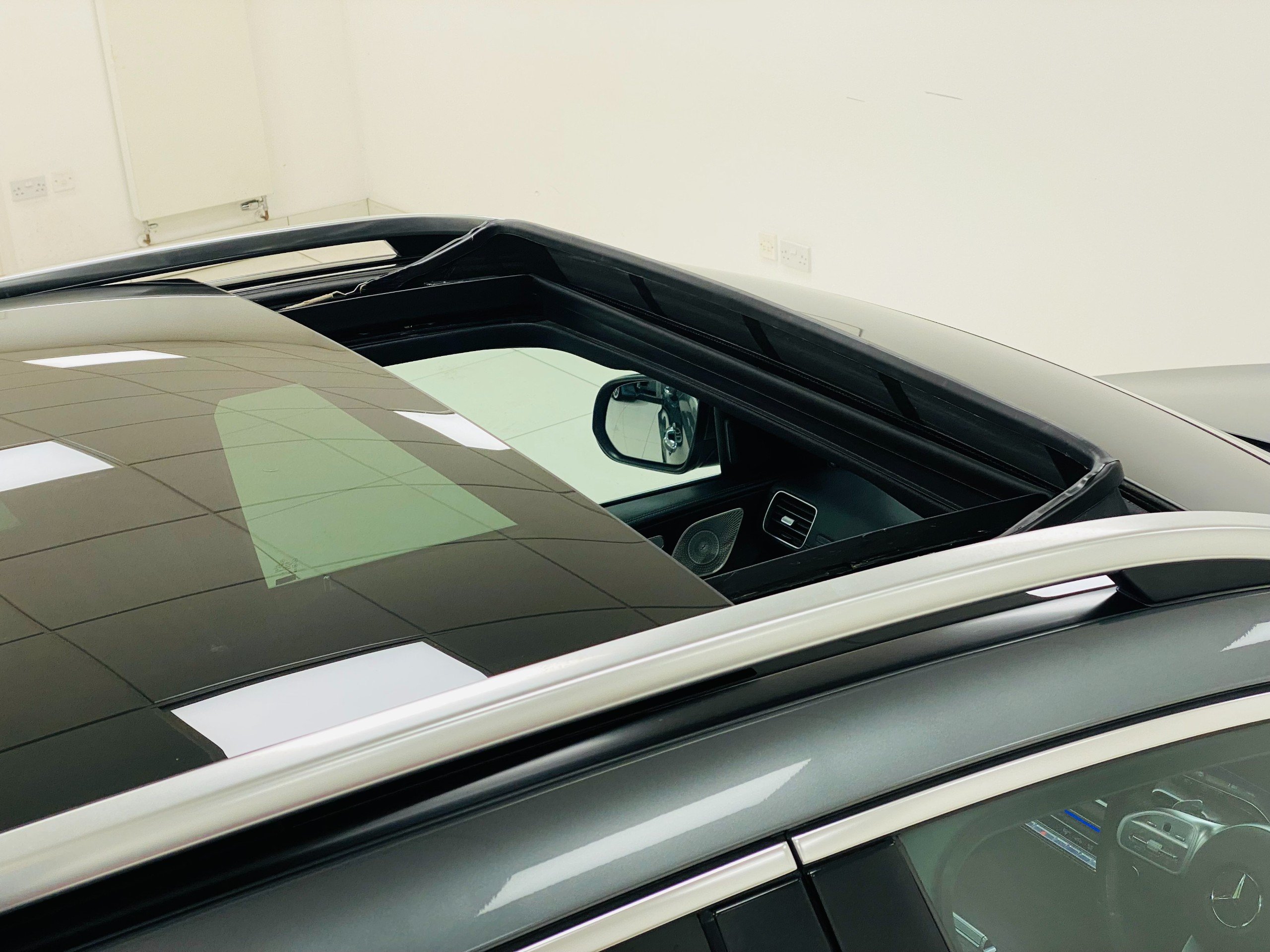 - Panoramic opening roof with power sunblind